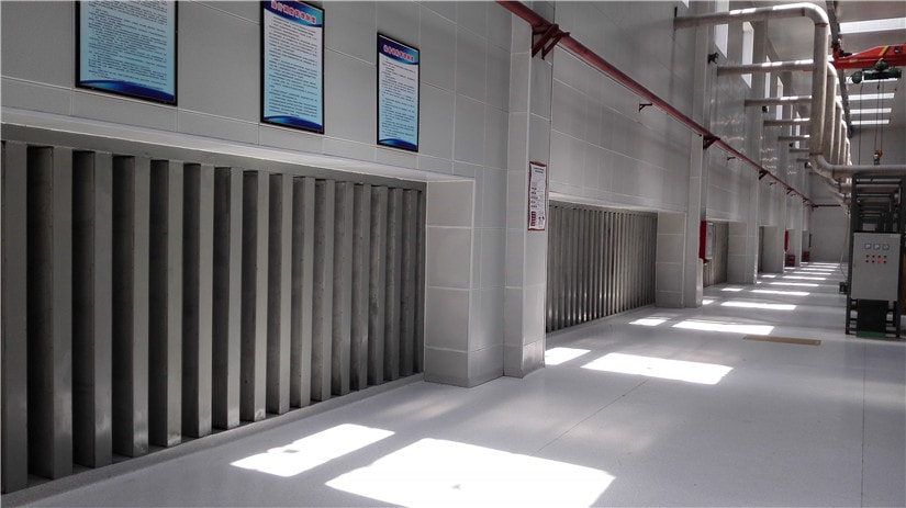通過(guò)對(duì)噪音源進(jìn)行測(cè)試和分析,根據(jù)噪音波頻的不同及現(xiàn)場(chǎng)實(shí)際情況,通過(guò)對(duì)機(jī)房安裝隔音門(mén)窗,吸隔音吊頂,吸隔音墻體,對(duì)設(shè)備安裝隔振裝置,煙囪消音器等手段,將噪聲源與外界進(jìn)行隔離。另外,為避免機(jī)房?jī)?nèi)高溫,配備通風(fēng)散熱消聲系統(tǒng)。經(jīng)過(guò)治理后的機(jī)房外達(dá)到(社會(huì)生活環(huán)境噪聲排放標(biāo)準(zhǔn)》(GB22337-2008)和《工業(yè)企業(yè)廠界噪聲標(biāo)準(zhǔn)》(GB12348-2008)的2類區(qū)標(biāo)準(zhǔn)即:白天60dB(A),夜間50dB(A)。